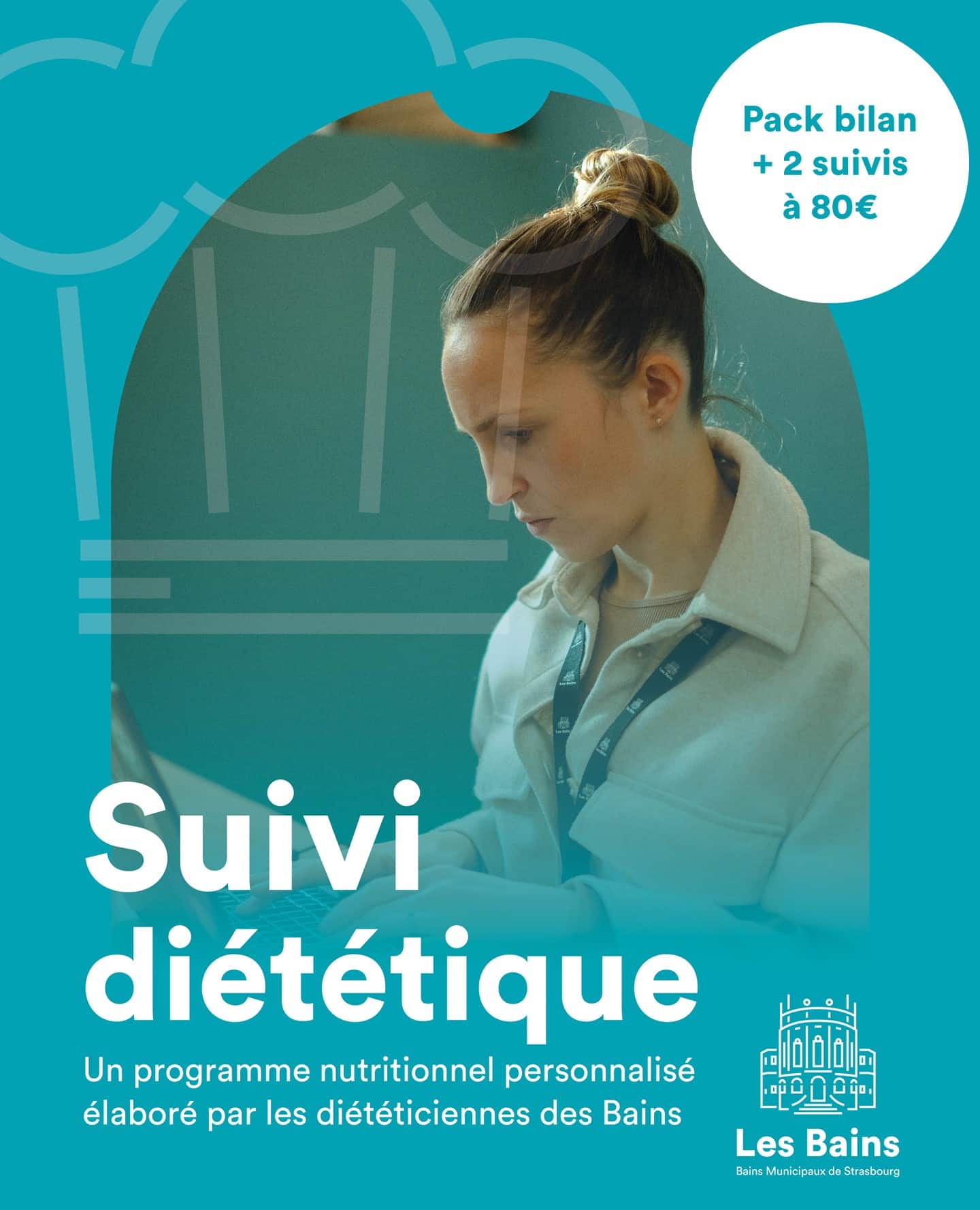 Les diététiciennes des Bains vous proposent des suivis diététiques pour vous accompagner avec un programme 100% personnalisé, adapté à vos goûts et objectifs comme : la perte de poids, une prise de masse, un défi sportif, un désir de manger sainement, etc.